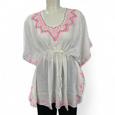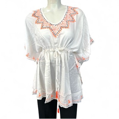 Cotton Mexican White Tops/Blouses Colorful Embroidered
