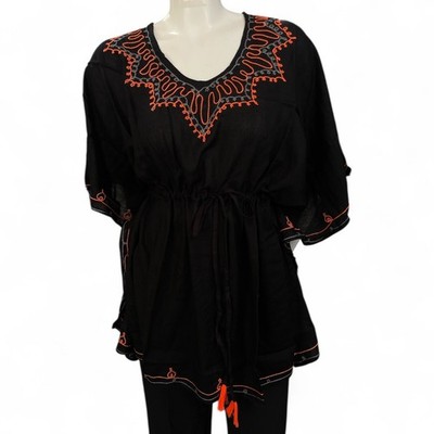 Here are 4 lovely Mexican-embroidered shirts / blouses — bohemian, artisan-style pieces for women — that capture that “Bohemian beauty” vibe you asked for 👇 Colors: Black with orange, black with pink, white with orange, and white with pink.