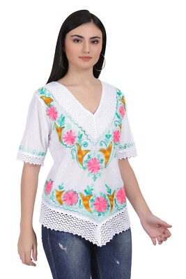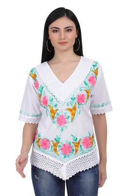 B eautiful handmade E mbroidered Mexican Blouses / tops with m ulticolors and styles. 100% Cotton Handmade Machine washable Free Shipping !!! S-1XL WE DO WHOLESALE ALSO !!!! PRICES MAY VARY DIFFERENT FOR WHOLESALE , BUT FOR ANY INFORMATION NEEDED MEASUREMENTS SMALL : Shoulder = 14in Waist =20in Height = 26in MEDIUM : Shoulder = 14.5in Waist = 21in Height = 27in LARGE : Shoulder = 15in Waist = 22in Height = 27in …