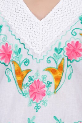 Cotton Mexican White Tops/Blouses Colorful Embroidered