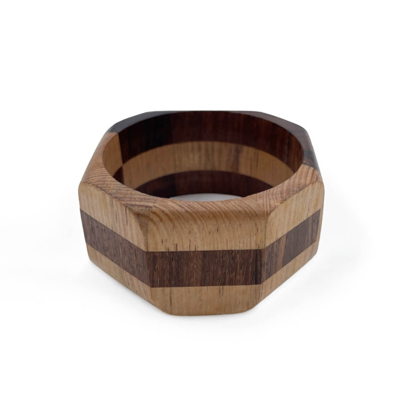 Octagon Multi-Tone Wood Bangle – Geometric Inlay Bracelet BH0259