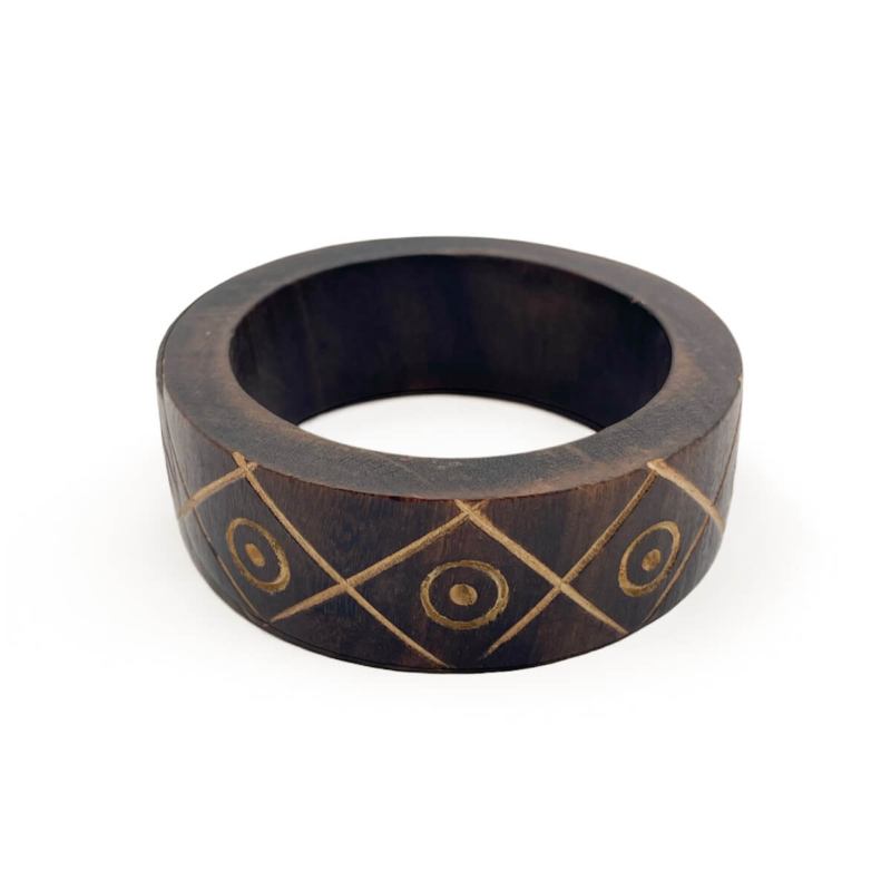 Dark Wood Bangle with Floral Cut-Outs – Ornate Bohemian Bracelet